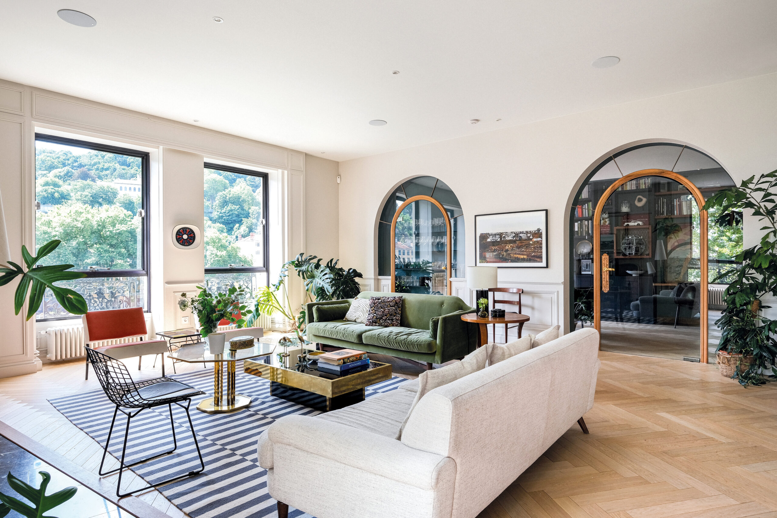 Situé au quatrième étage d’un immeuble ancien de caractère, TELAS — un nom qui signifie « toiles » en portugais — célèbre la lumière et le paysage. À travers ses grandes fenêtres métalliques attribuées à Jean Prouvé, les bords de Saône s’offrent comme une succession de tableaux vivants. Avec ses 180,84 m² Carrez, cet appartement conjugue le charme de l’ancien associe à une rénovation contemporaine d’une grande finesse. Autrefois lieu de réception d’un architecte lyonnais renommé, il a été repensé par un couple de chefs tombés sous son charme, repensé en intérieur chaleureux et inspirant, à la fois familial et singulier.