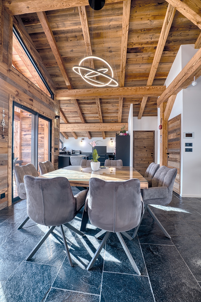 Développant une superficie totale de 256 m², dont 211 m² habitables, ce chalet s’organise sur trois niveaux et incarne une parfaite harmonie entre architecture alpine traditionnelle et prestations contemporaines haut de gamme.