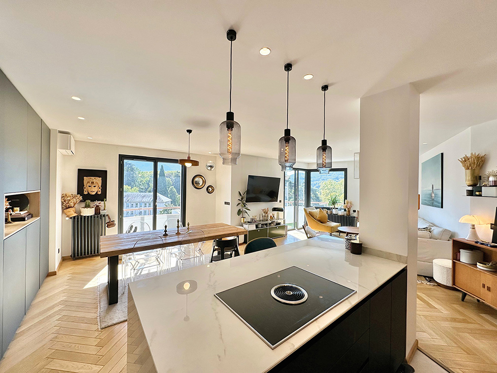 Le point fort : une vaste pièce de vie d’environ 60 m², prolongée par un balcon plein Sud et ouverte sur une cuisine équipée avec îlot central, apportant convivialité et luminosité. Finitions soignées, matériaux nobles et climatisation intégrale assurent élégance et confort. Une cave de 8 m² et un grenier de 15 m² complètent ce bien d’exception.