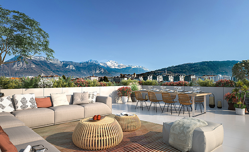 (1) Exemple de prix en TVA  à 20 % au 30/01/26 d’un appartement 5 pièces, lot A51 de 112,43 m² habitables avec un balcon de 17 m² et un rooftop de 57 m², situé au 5e étage de la résidence Vertuose situé à Annecy (74), prix avec 2 garages en sous-sol et une cave inclus. Dans la limite des stocks disponibles. Voir conditions sur cogedim.com (2) Frais de notaire offerts hors frais éventuels liés à l’emprunt et hors frais d’hypothèque, de caution de privilège de prêteurs de deniers ou de tous autres frais éventuels liés au financement de l’acquisition. Offre valable pour le lot A51, dans la résidence Vertuose à Annecy (74), hors stationnement. Offre non cumulable avec toutes autres offres Cogedim en cours ou à venir. Détails et conditions en espace de vente ou sur cogedim.com. Illustrations non contractuelles destinées à exprimer une intention architecturale d’ensemble et susceptibles d’adaptations. Les appartements et surfaces extérieures sont vendus et livrés non aménagés et non meublés : Custhome. Cogedim SAS, 87 rue de Richelieu, 75002 Paris, RCS PARIS N°054500814 – SIRET : 054 500 814 00063. Document non contractuel.